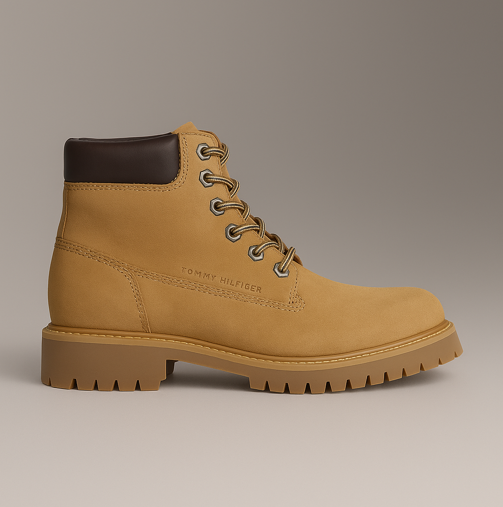 TOMMY HILFIGER Erkek Marka Logolu Süet Üst Kısımlı Geri Dönüştürülmüş Polyster Astarlı Kauçuk Tabanlı Açık Kahverengi Bot & Bootie FM0FM05563 GWJ