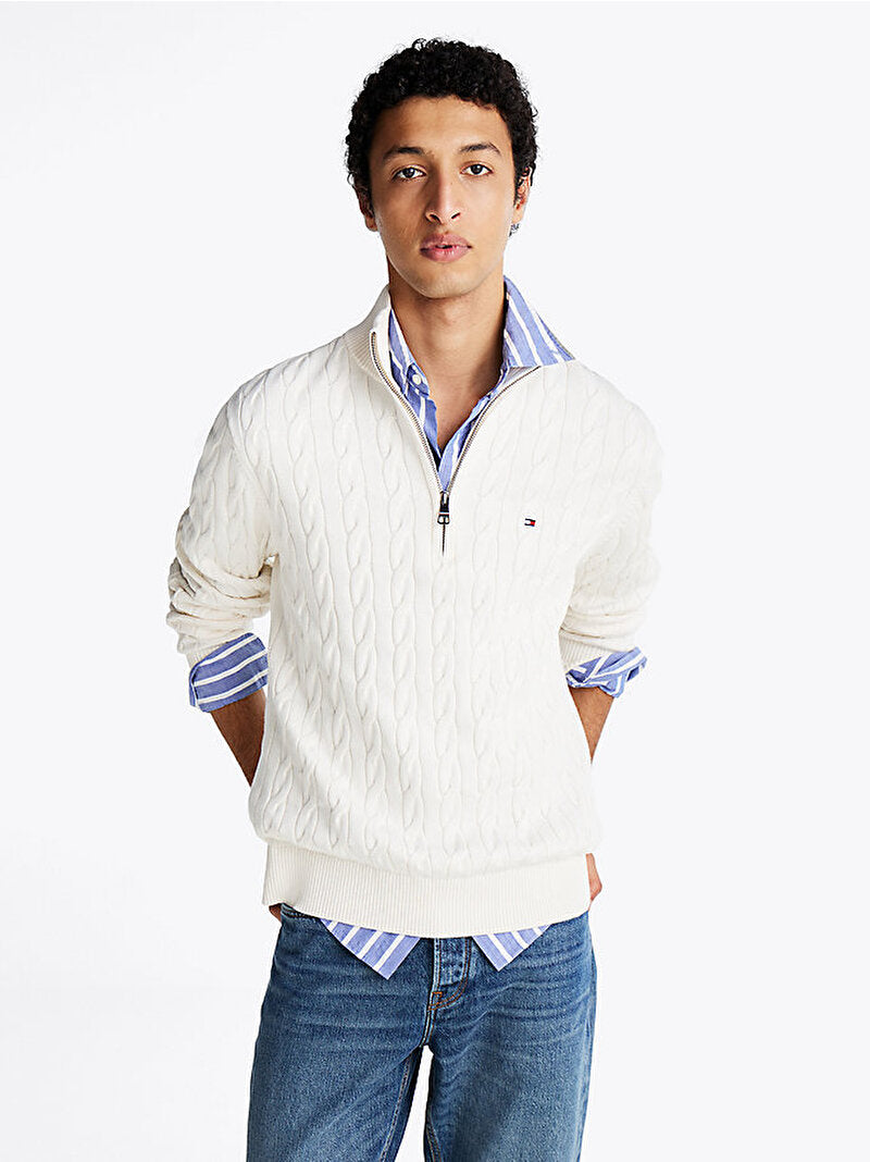 Koleksiyon: Classic Cotton Cable Zip Mock